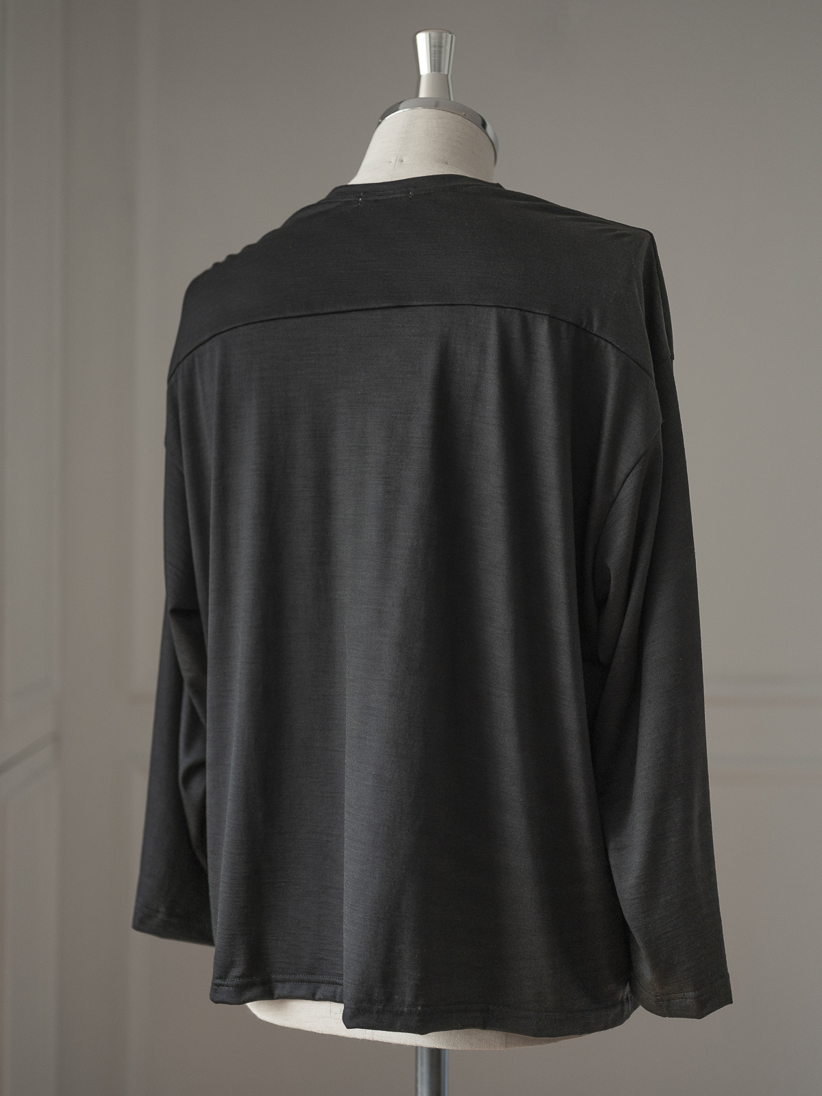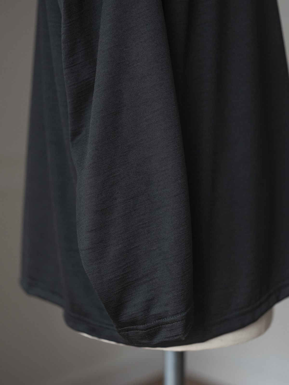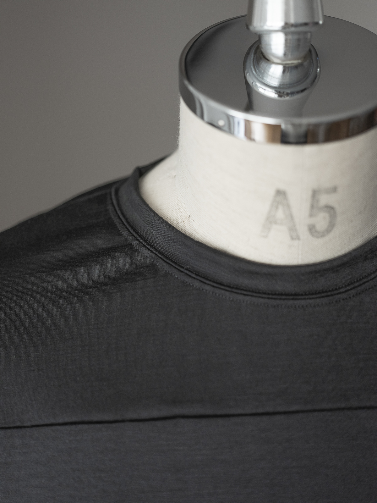최상급의 엑스트라 파인 메리노 울(Extra Fine Merino Wool)로 짠 천축(天竺) 원단을 사용하고 특수 가공을 진행하여, 매우 부드러운 촉감과 함께 고급스러운 윤기, 자연스러운 드레이프를 즐기실 수 있습니다.