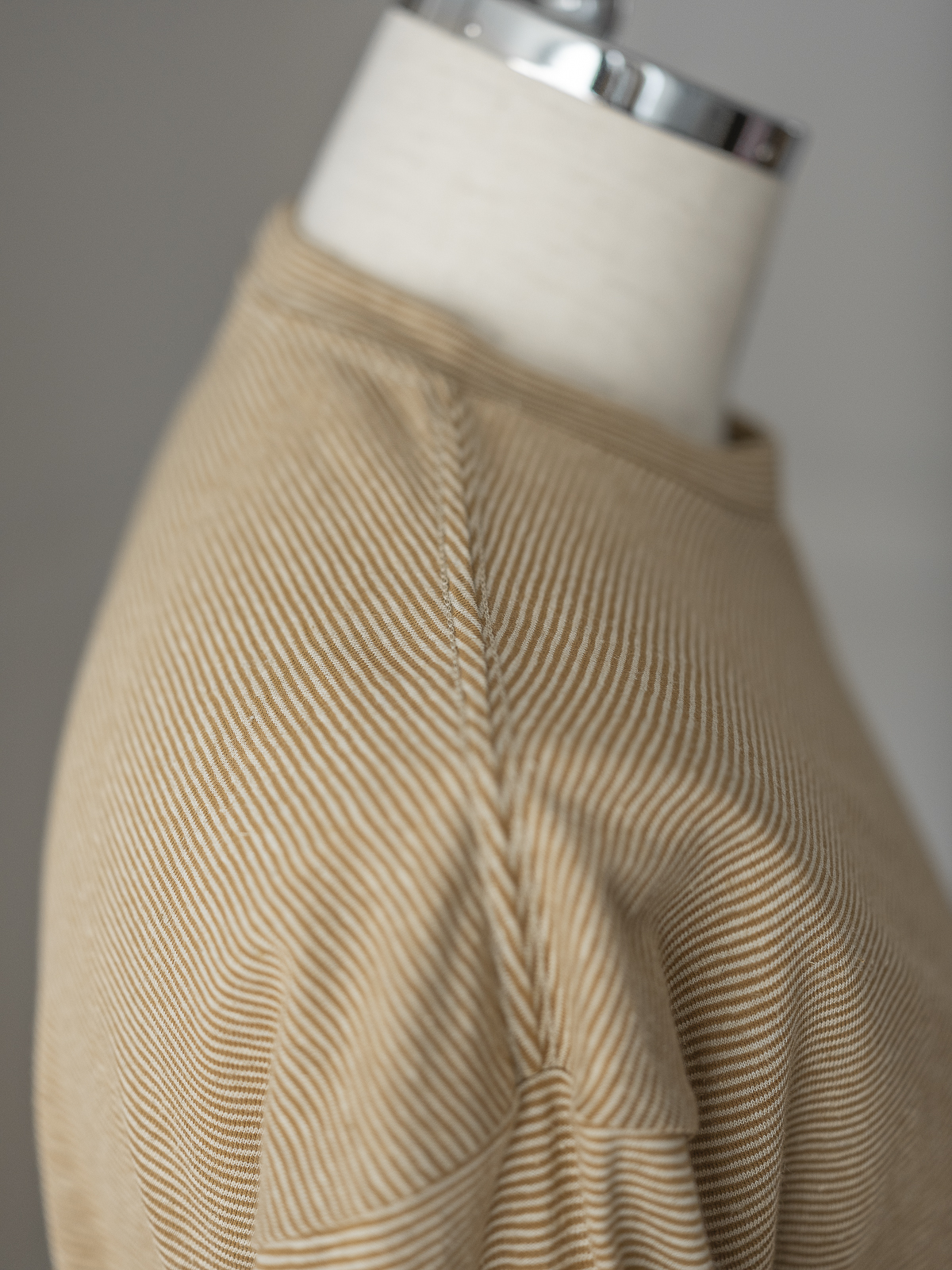코튼과 헴프 혼방의 최상급 보더 원단을 사용하여 군데 군데의 넵(Nep)과 자연스러운 보풀감이 주는 빈티지함을 즐기실 수 있는 제품입니다.