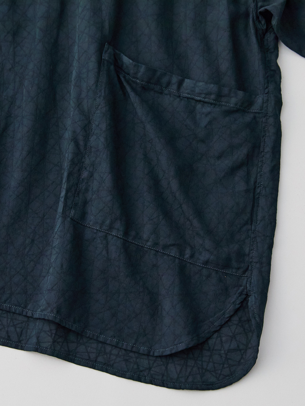 유행을 타지 않는 기본적인 실루엣의 커버 셔츠를 베이스로 제작 되었으며, 양 사이드 부분에 위치한 슬릿(Slit)의 모서리 부분은 둥글게 라운드 처리가 되어 있습니다.