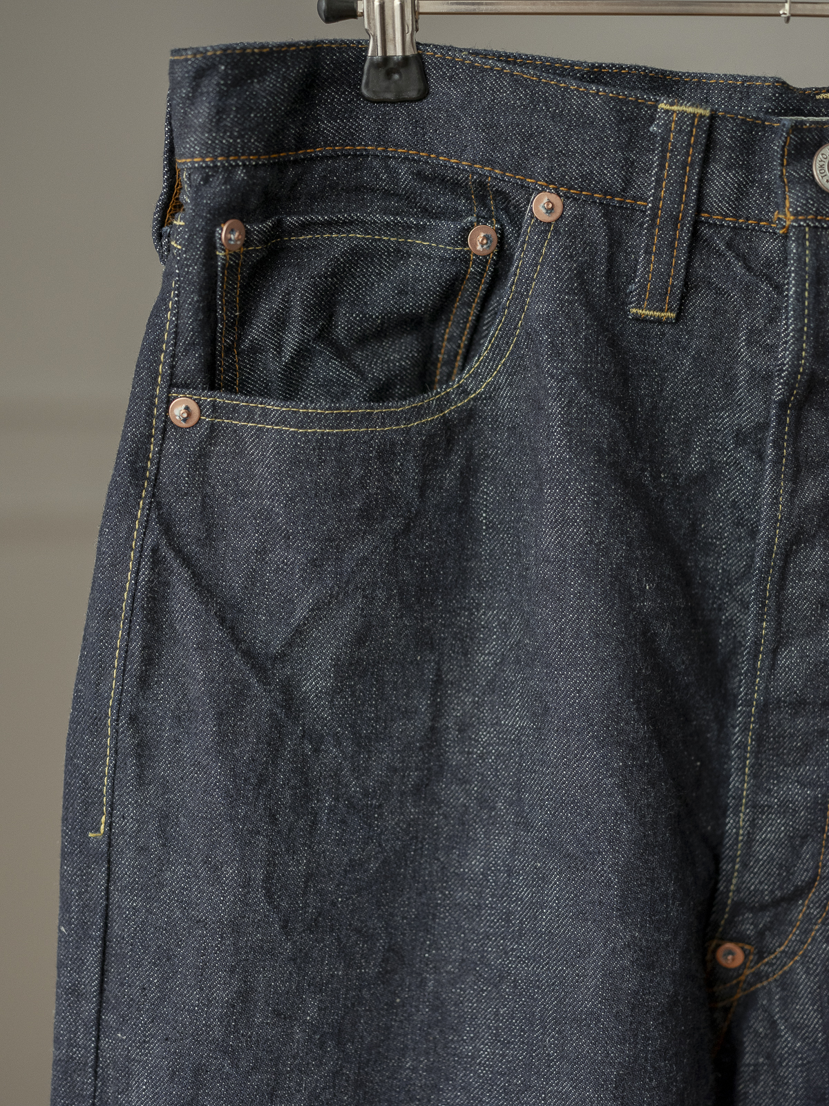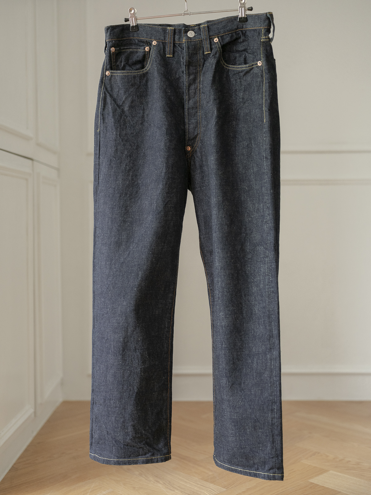 리바이스 501 XX의 1937년도 빈티지 데님 팬츠를 모티브로 제작된 셀비지 데님 팬츠입니다.