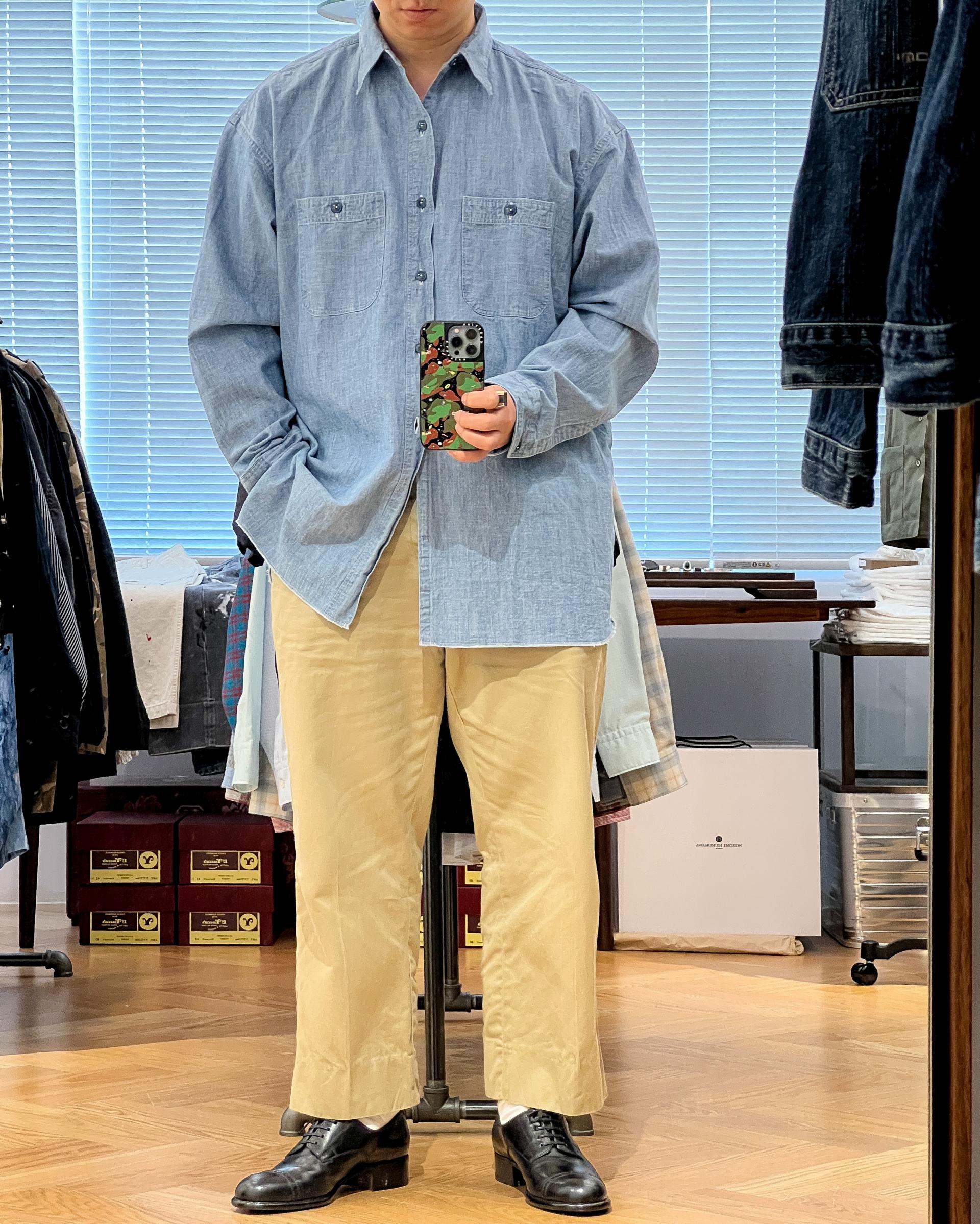 1940년대 US NAVY의 샴브레이 셔츠를 모티브로 하여 하이퍼 빅 사이즈로 제작한 셔츠입니다.