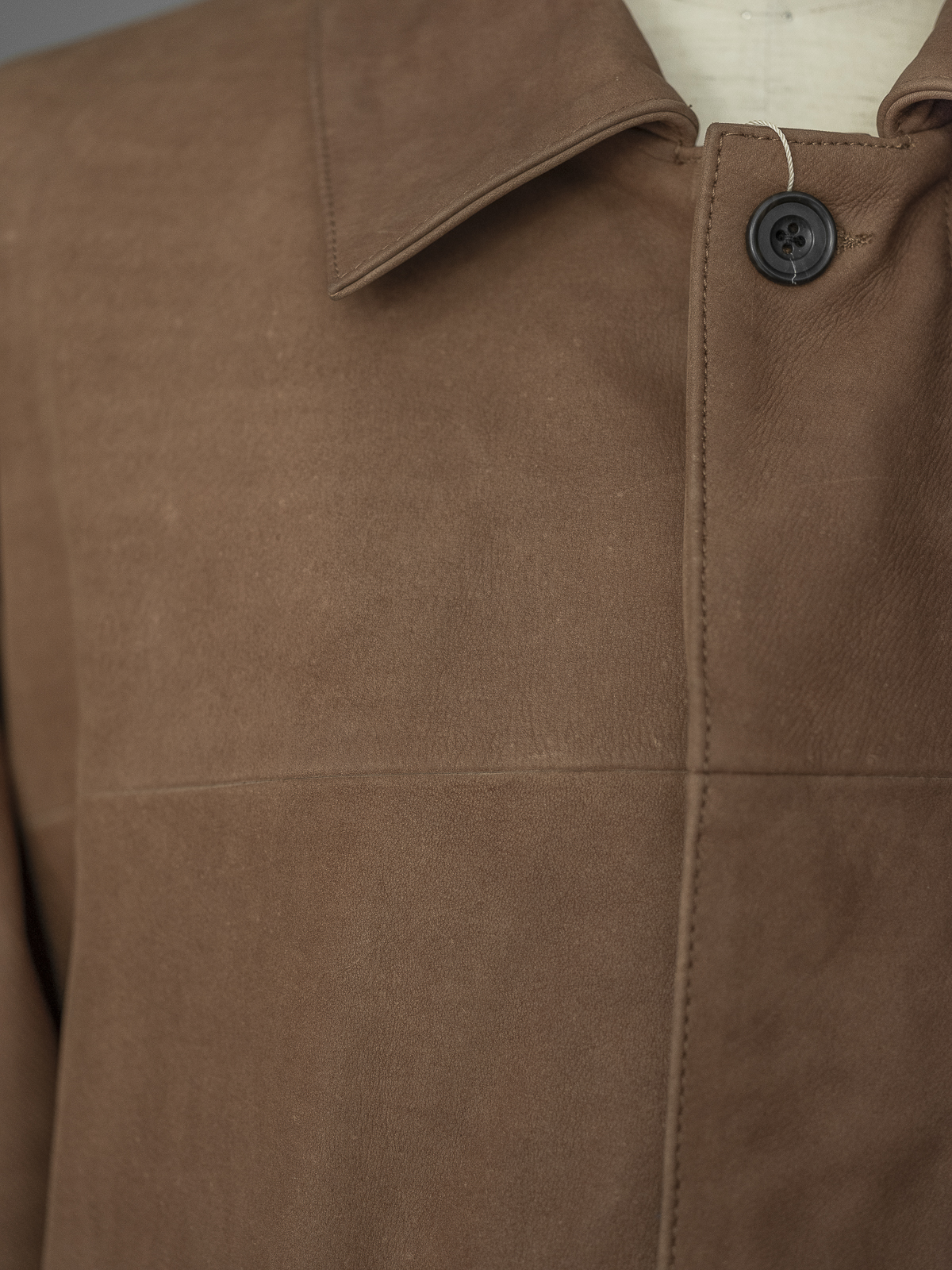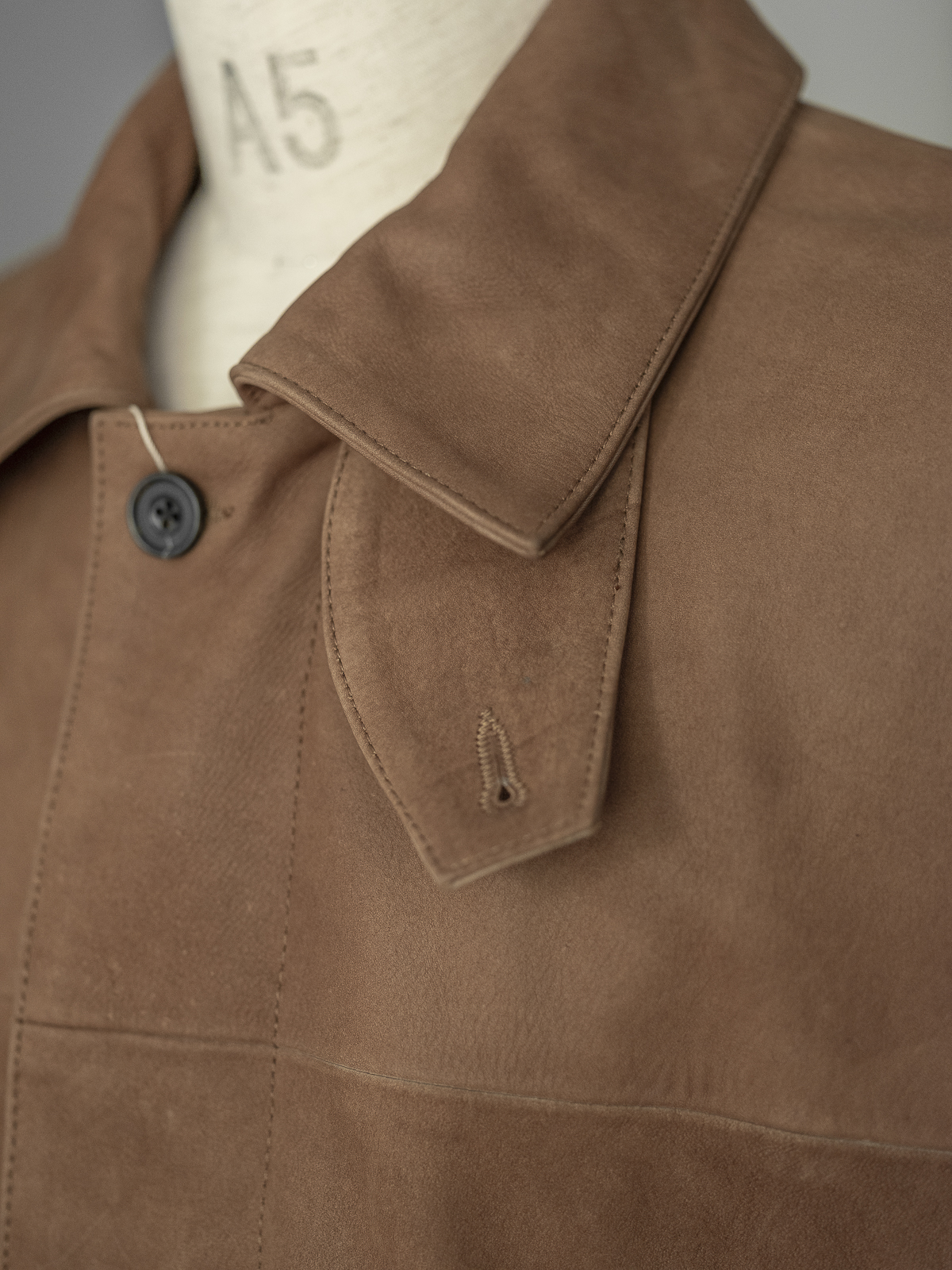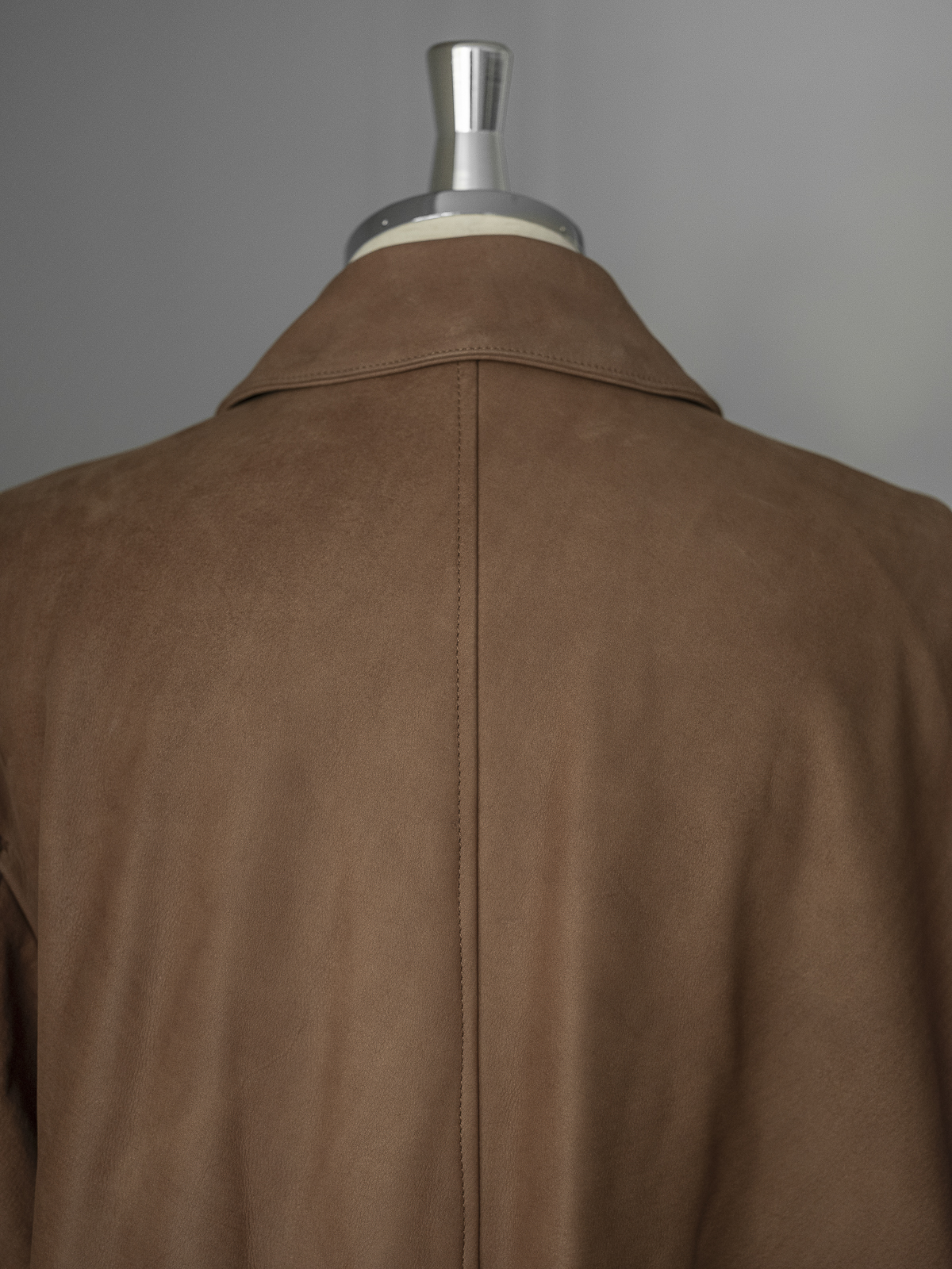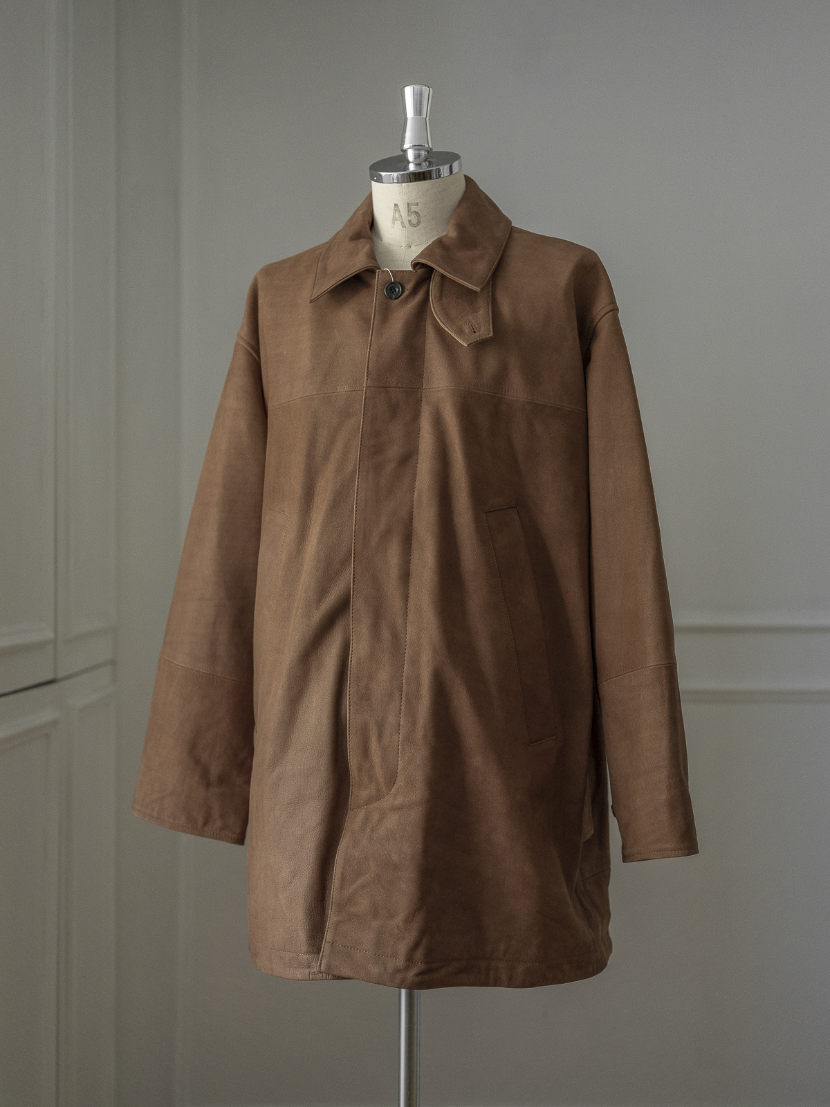 맥코트의 디자인을 모티브로 하여 현대적으로 재구축한 누벅(Nubuck) 가죽 코트입니다.