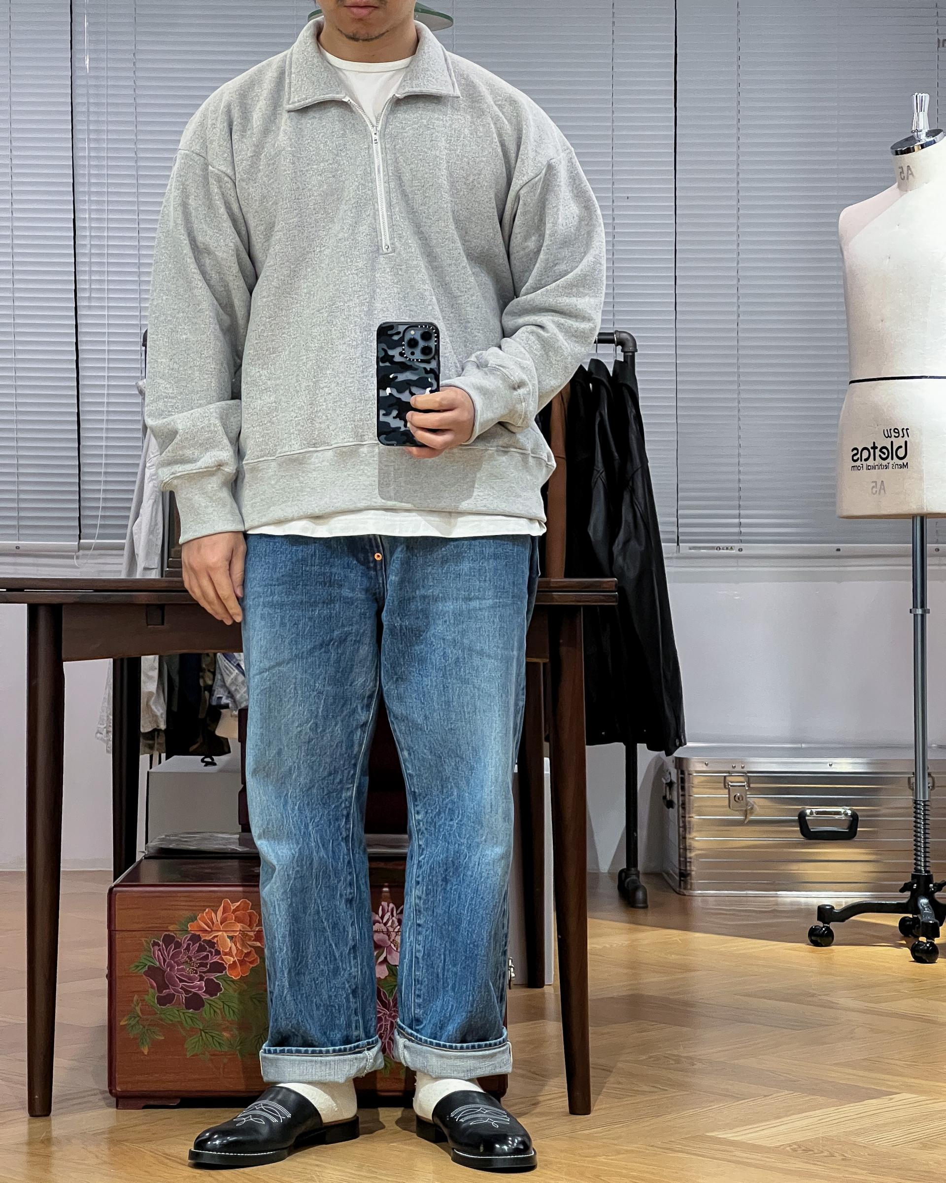 1950년대 J.C.PENNY사의 희귀한 빈티지 하프 집 스웻 셔츠를 베이스로 하여 제작된 스웻 셔츠로, 와카야마현(和歌山県)에서 짠 루프휠(LOOPWHEEL) 원단을 사용했습니다.