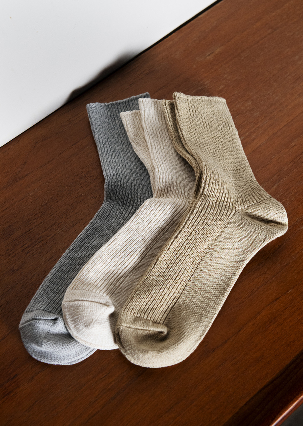ROTOTO [로토토] - Washi/Recycled Cotton Rib Crew Socks - Raw