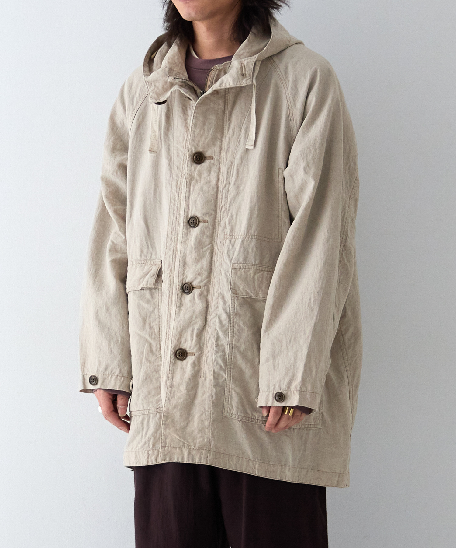 얇지만 고밀도로 짜낸 고품질의 린넨 원단에 초발수 가공을 하여, 물을 튕겨내는 실용성과 더불어 린넨의 장점인 통기성도 지녀 쾌적한 착용감을 제공합니다.