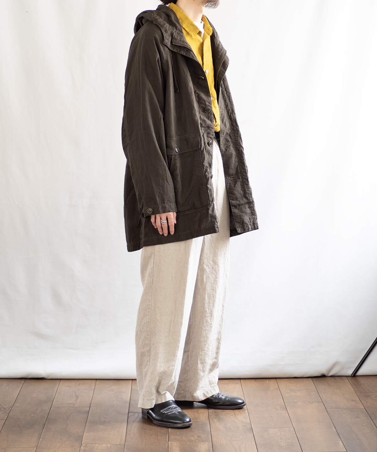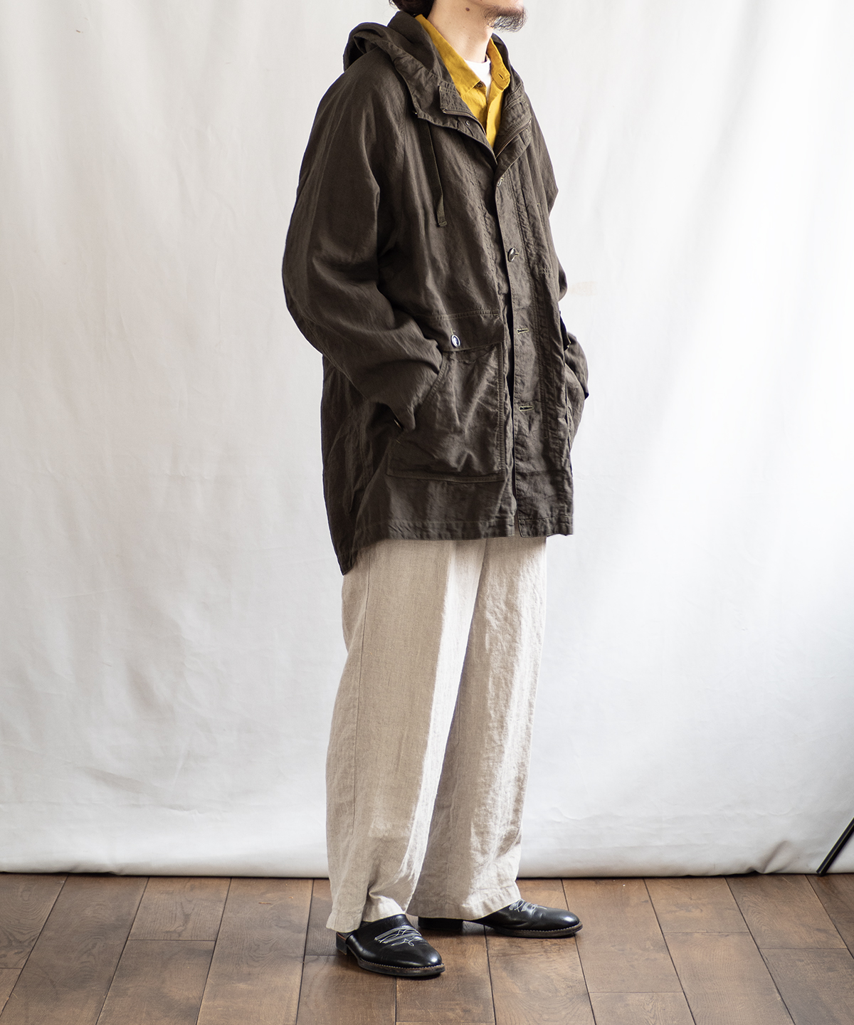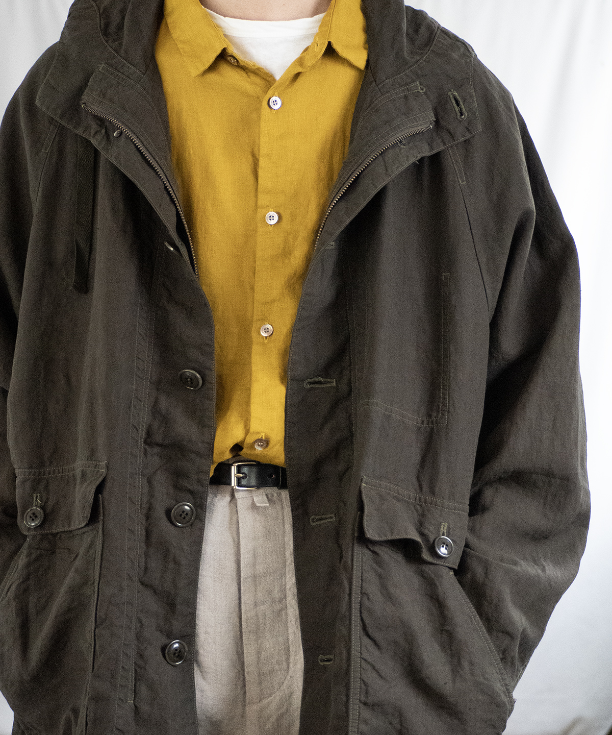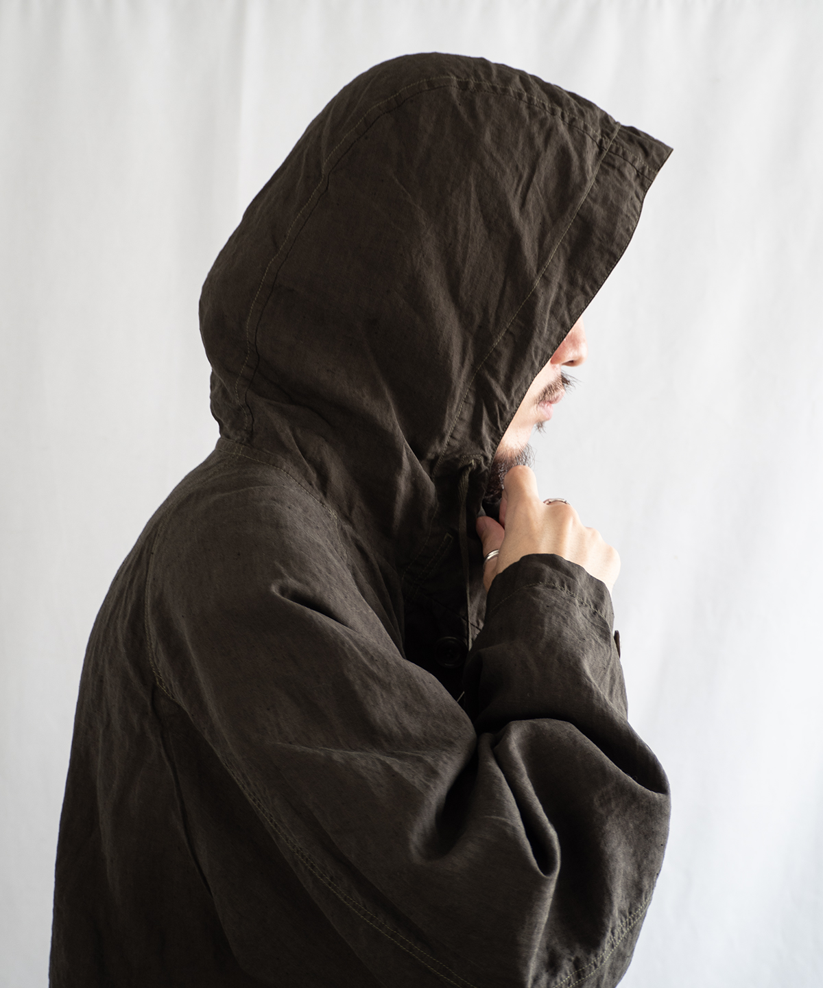 얇지만 고밀도로 짜낸 고품질의 린넨 원단에 초발수 가공을 하여, 물을 튕겨내는 실용성과 더불어 린넨의 장점인 통기성도 지녀 쾌적한 착용감을 제공합니다.