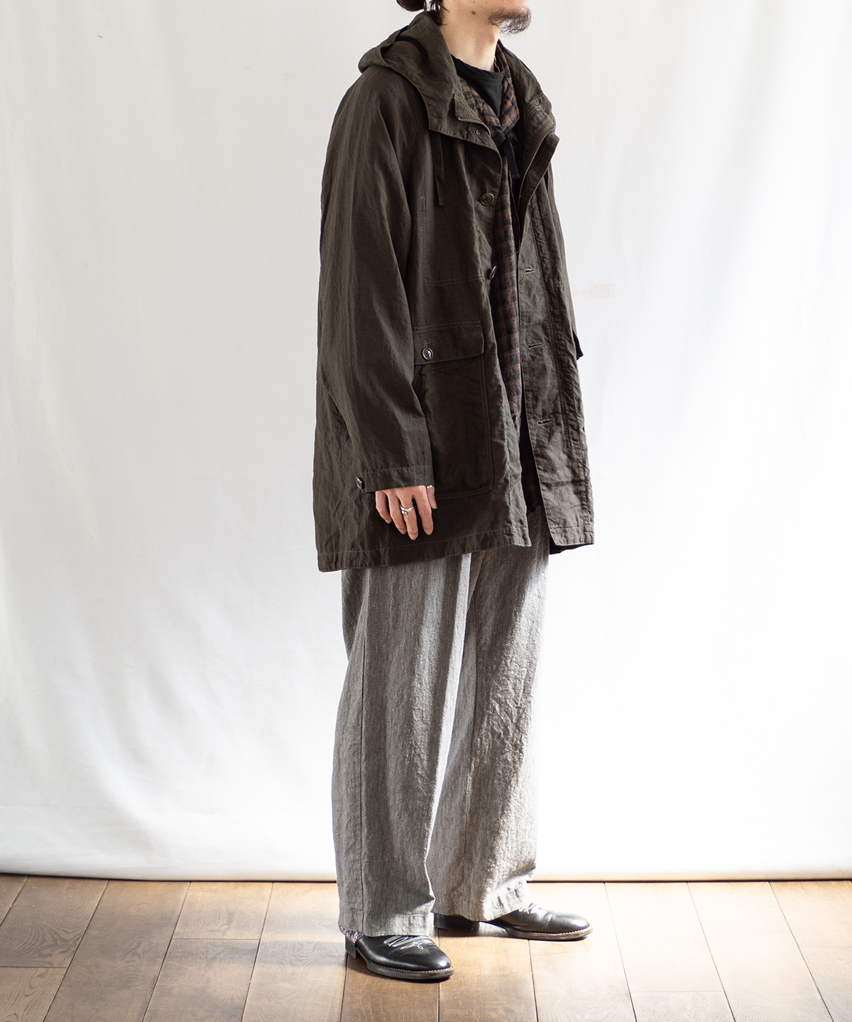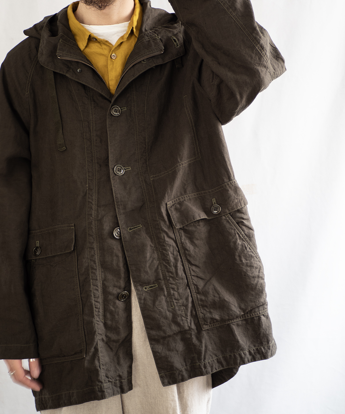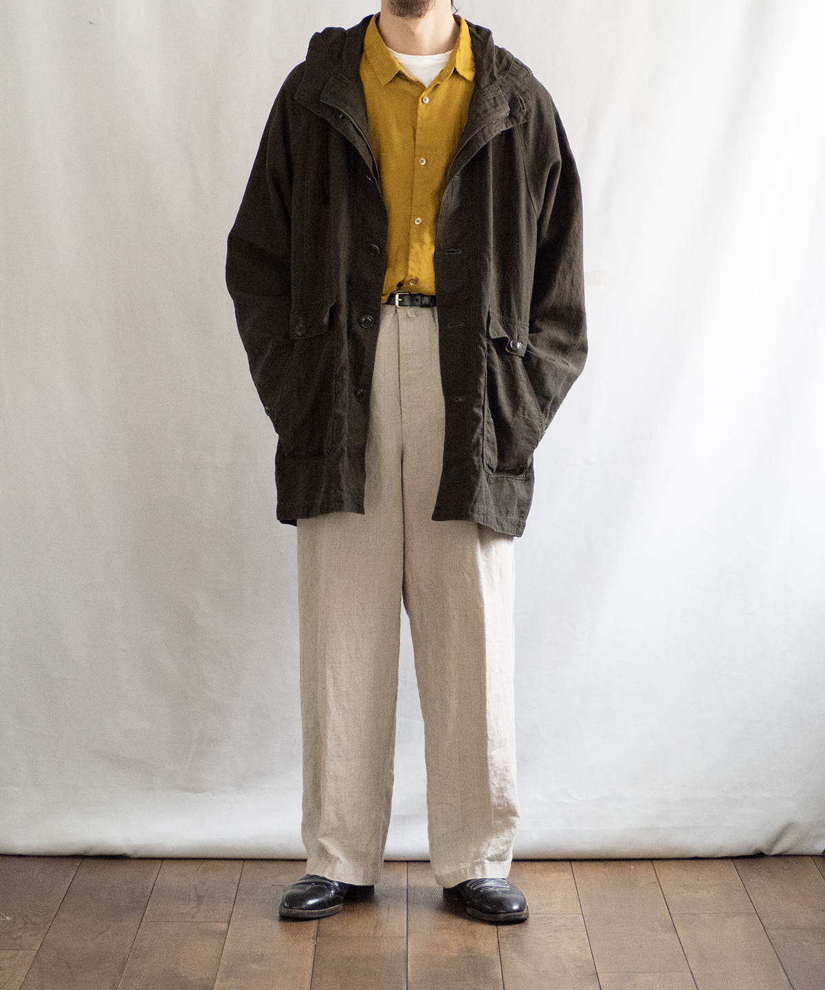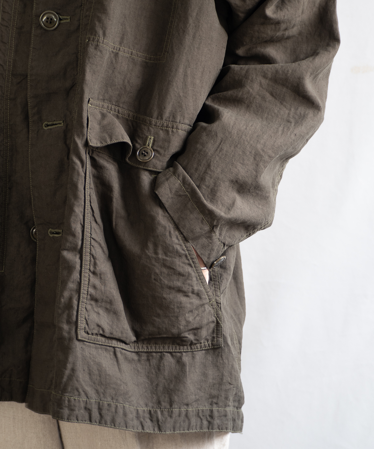 얇지만 고밀도로 짜낸 고품질의 린넨 원단에 초발수 가공을 하여, 물을 튕겨내는 실용성과 더불어 린넨의 장점인 통기성도 지녀 쾌적한 착용감을 제공합니다.