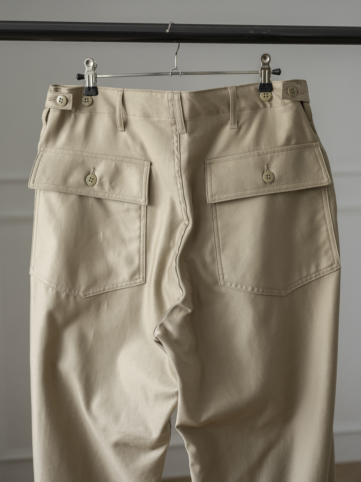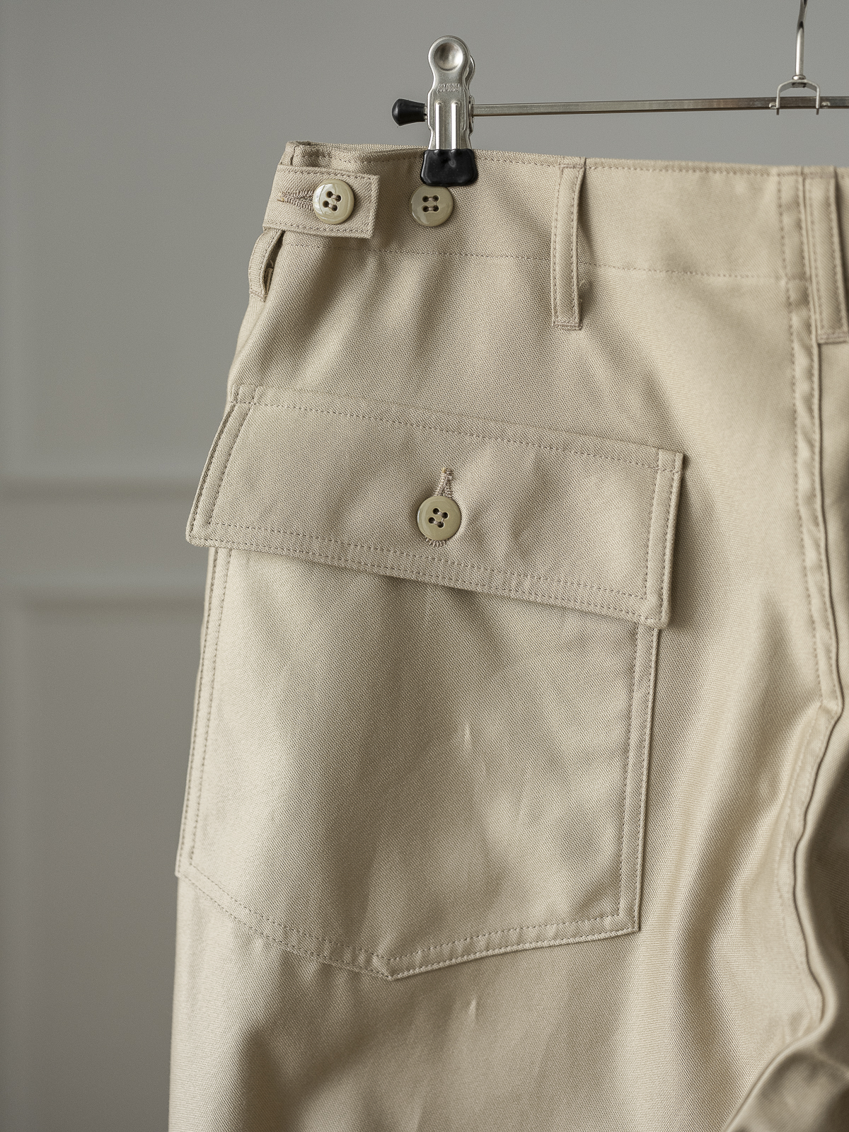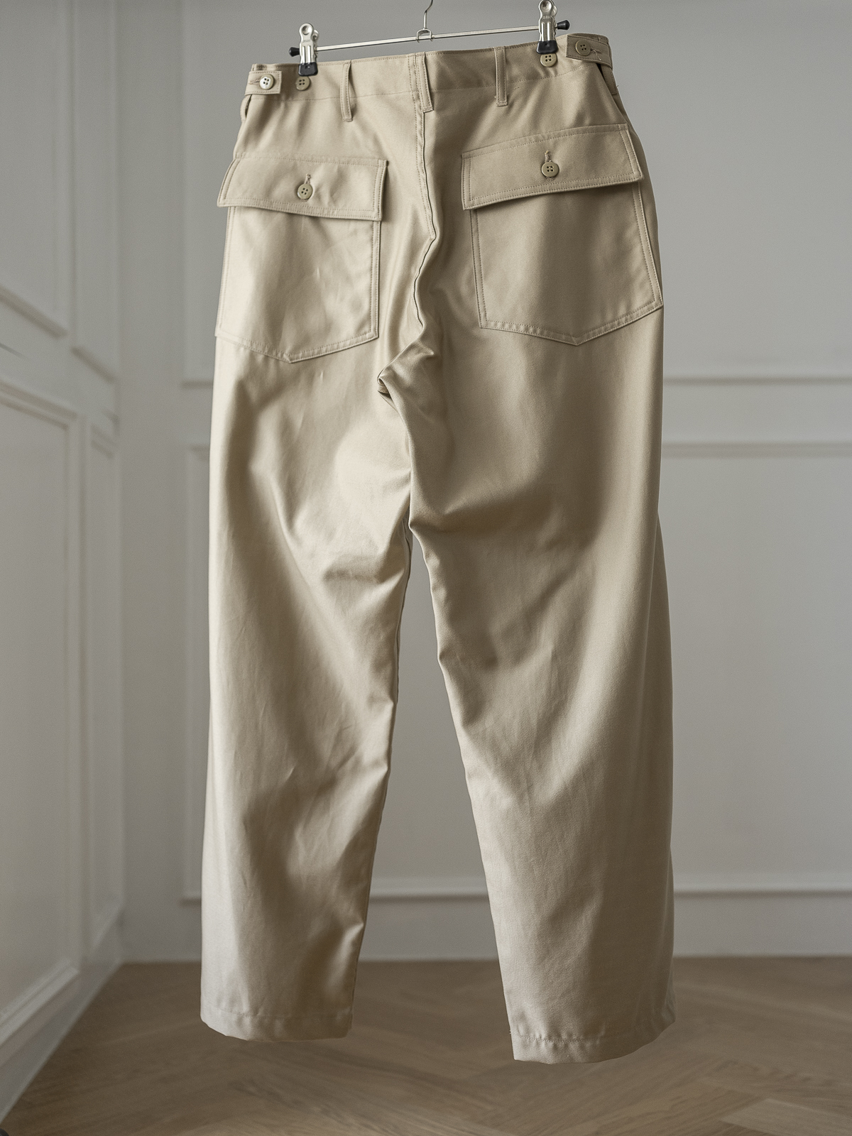 프런트 부분의 커다란 2개의 패치 포켓은 실용적이면서도 디자인에 포인트가 되며, 뒤쪽 부분 양쪽에도 버튼이 달린 2개의 플랩 포켓이 달려 있습니다.