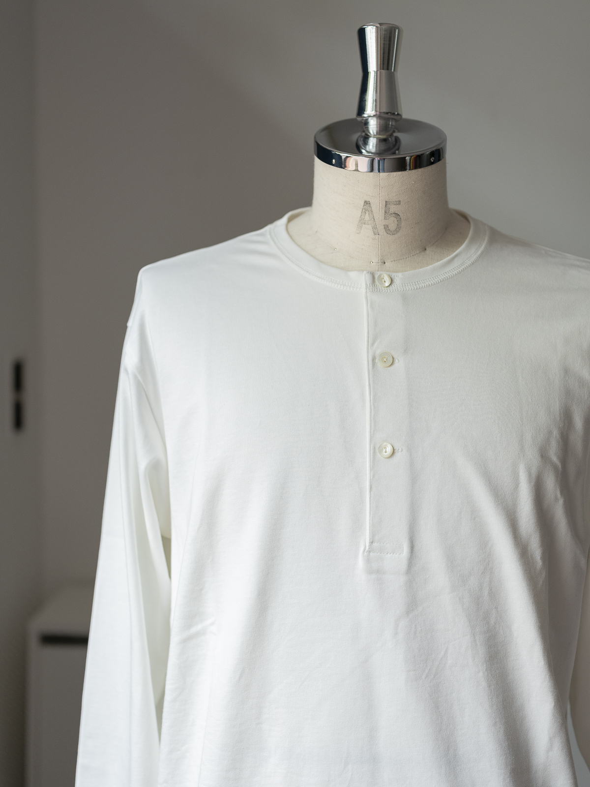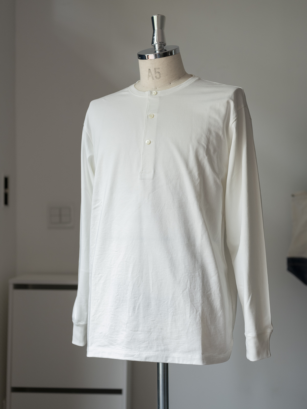 프리미엄 유기농 코튼으로 만든 헨리넥 롱 슬리브 티셔츠입니다.