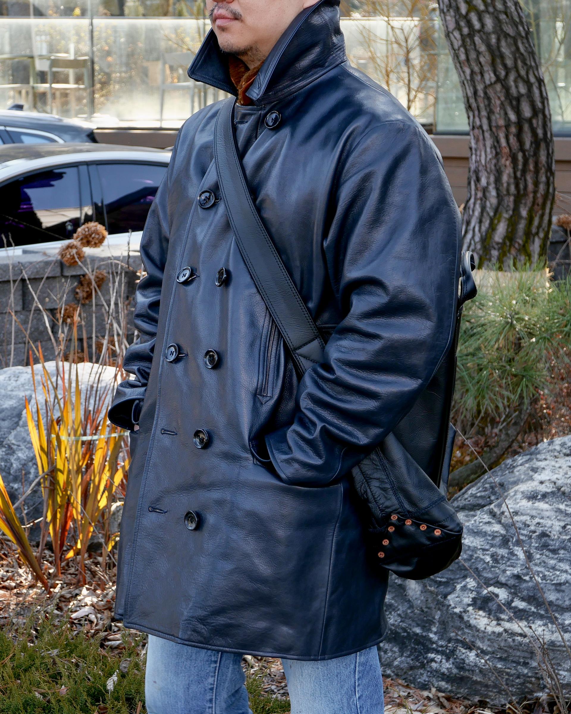 차심(茶芯) 소가죽 베지터블 태닝 레더로 제작한 13버튼 레더 피코트입니다. 여러 국가의 피코트 역사와 변천을 면밀히 살펴 핵심적인 요소들을 선별하고, 이를 현대적으로 재해석하여 완성했습니다.