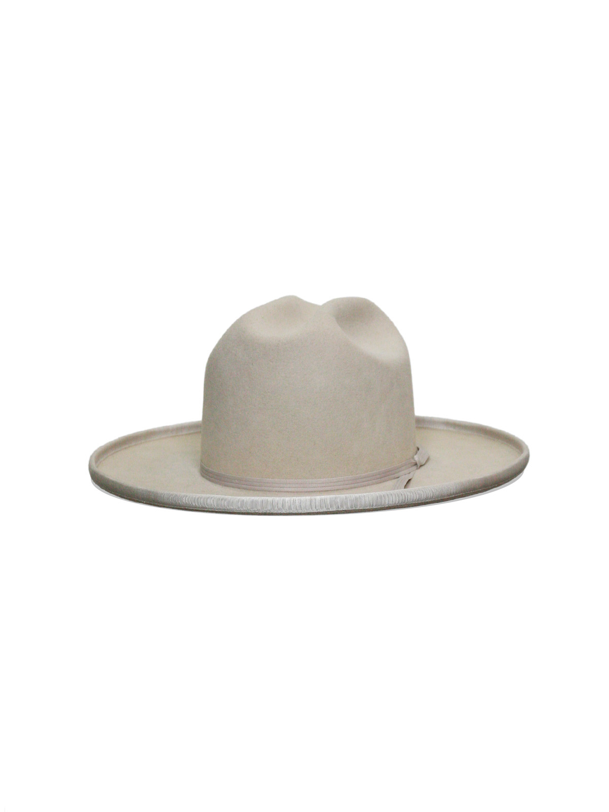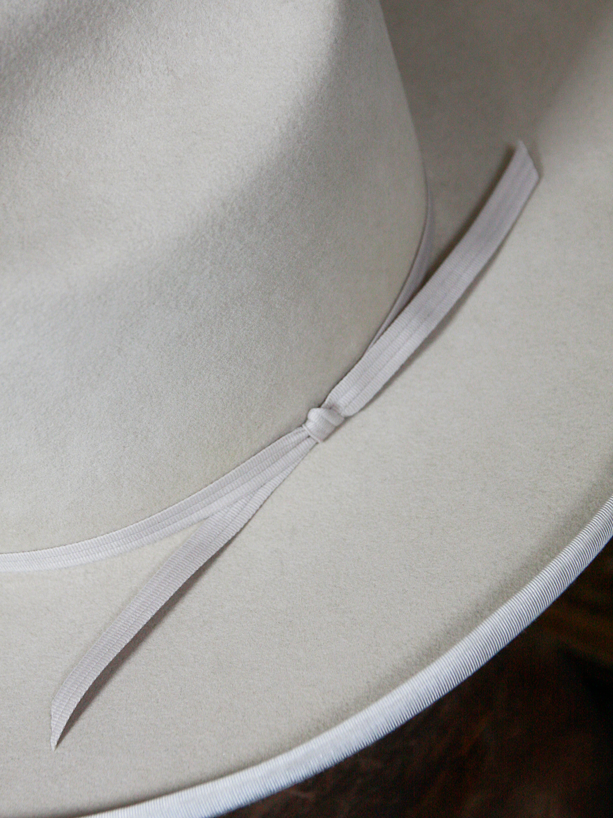 리본에는 과거 웨스턴 햇에 사용되던 빈티지 데드스탁 플라이 밴드(ply band)를 적용했습니다. 이제는 더 이상 생산되지 않는 이 전통적인 소재는, 시간의 흐름 속에서 희소한 존재가 되었고, 모자에 조용하지만 분명한 깊이를 더합니다.