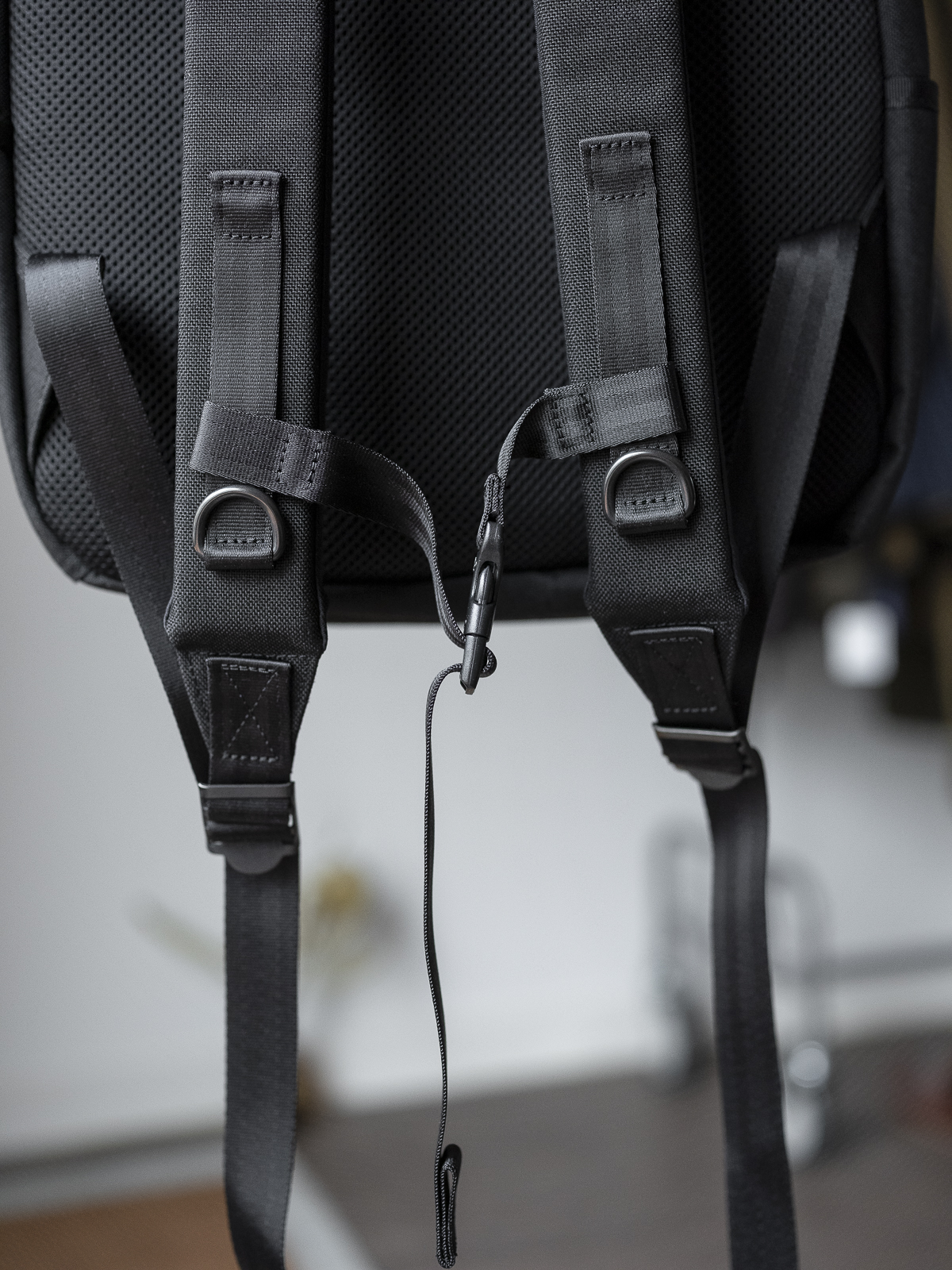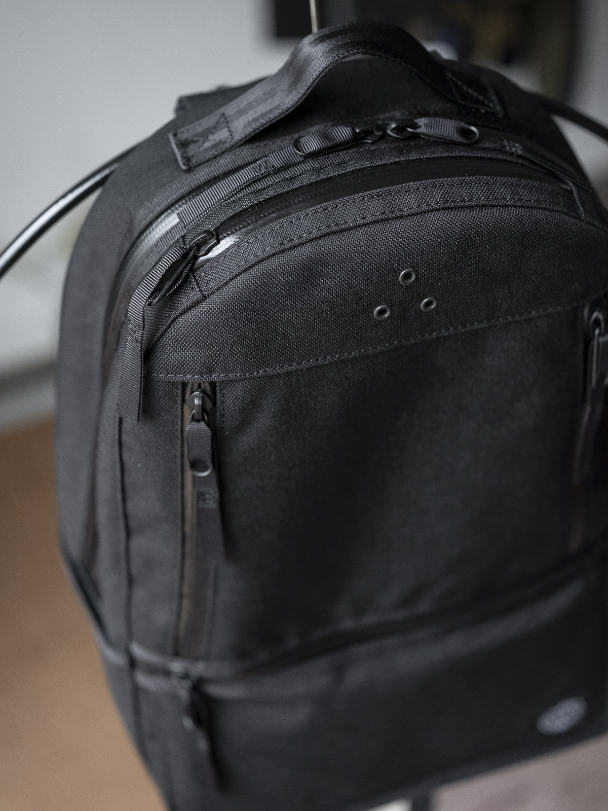 - 외부 : 메인 발수 가공 지퍼 포켓 x 1, 상단 발수 가공 지퍼 포켓 x 1, 전면 발수 가공 지퍼 포켓 x 1, 사이드 오픈 포켓 x 2