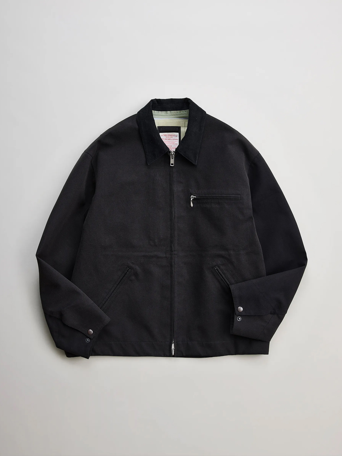 유황 염색(硫化染め)으로 마감한 코튼 덕(Cotton Duck) 원단에 열가소성 폴리우레탄을 중간층으로, 나일론 100%를 안감에 배치한 삼중 레이어 구조의 원단으로 제작된 워크 재킷입니다.